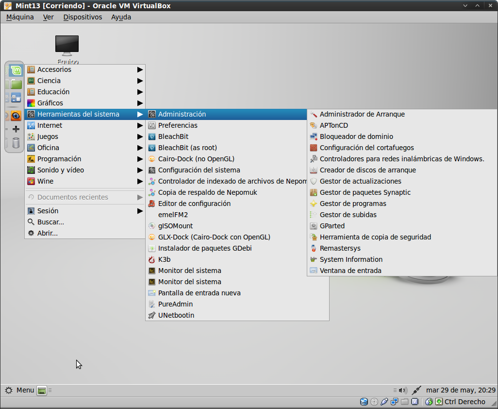 Una vez pasado este trago, nos encontramos con el escritorio clásico de Mint (Fig. 3.-), todo paz y sencillez.