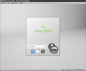 Una vez instalado nos ofrece ‘por defecto’ (y nunca mejor dicho) esta ventana de entrada (Fig. 1.-). Su diseño no es muy bueno. Su parte usable es muy pequeña (donde se pone el usuario y la password y se puede elegir el tipo de sesión, el idioma y algún otro ajuste). Tiene a la derecha un horrible y desfasado dibujo representando un anticuado ordenador enchufado a una bola del mundo. Todo muy barroco e inútil y que se desdice con la tradición de fino diseño que caracteriza esta distribución.