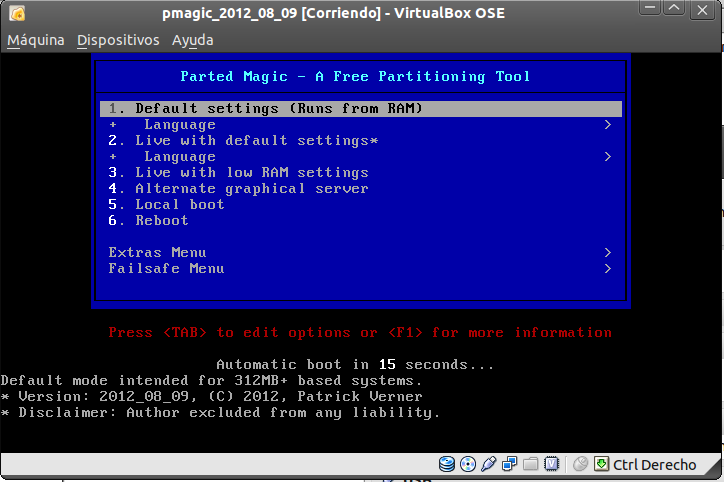 Parted Magic 2012-08-09. Linux de mantenimiento actualizado