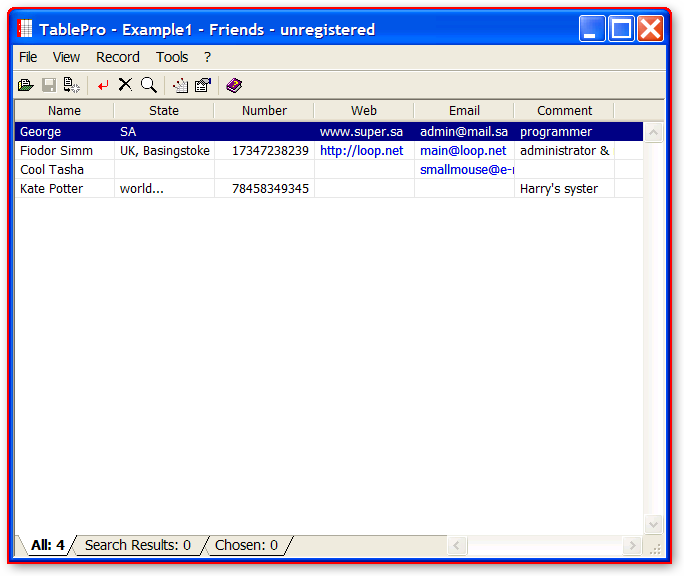 Tablepro.- Esta aplicación es una base de datos potentísima que usa ficheros de texto, que se pueden exportar a formato CSV, editable por hojas de cálculo (como Excel y equivalentes) o por editores de texto (como Notepad2). Aunque desde hace un tiempo no hay nuevas versiones gratuitas, esta es ideal para trabajar con pequeñas (y grandes tablas) y hacer maravillas con los datos.