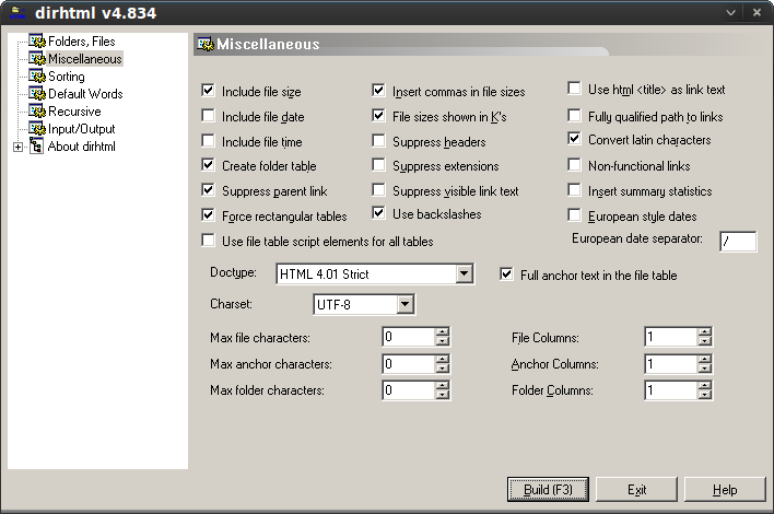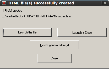 Aplicación gratuita y portable, Dirhtml, que permite generar ficheros que consisten en las listas de los archivos contenidos en un directorio o en un disco completo. Con los enlaces creados en los ficheros de listados generados, se puede acceder directamente a los archivos originales como si se tratara de una página web.