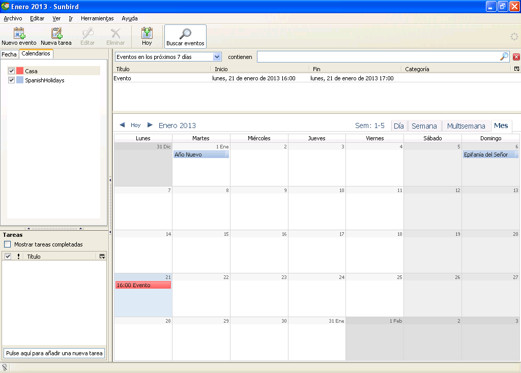 Hace ya unos años se podía encontrar el programa Mozilla Sunbird en pleno desarrollo. Aunque ahora Mozilla no sigue sacando nuevas versiones, sigue siendo una magnífica opción de calendario de escritorio, con una interfase muy agradable y grandes prestaciones. Un uso típico es poner los archivos ICalendar en un directorio de acceso compartido, de forma que todos los miembros de un equipo pueden tener acceso a un calendario común, que basta con que lo edite uno de ellos. Admite capas de calendarios, que pueden mostrarse de distinto color, facilitando la separación de trabajos. Hay también versiones para instalar y portables. En las de instalar se puede encontrar en español. En las portables se encuentra sólo en inglés.