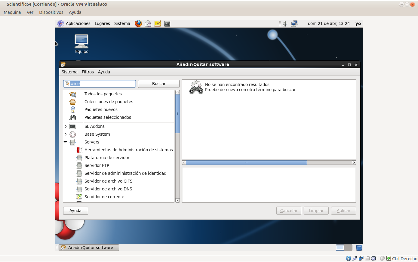 La colección de programas que trae de serie es correcta, pero sin ningún extra para el usuario común. El problema lo he encontrado cuando he intentado instalar Wine para poder usar mis programas de Windows. Simplemente no he podido localizarlo con el gestor de programas. Tampoco he podido encontrar gFTP, mi programa favorito para acceder a servidores FTP, con el que puedo introducir en la máquina virtual otros programas descargados en archivos locales para poder instalarlos. La distribución ha sido desarrollada por Fermi National Accelerator Laboratory y la European Organization for Nuclear Research (CERN) posiblemente para su uso interno.