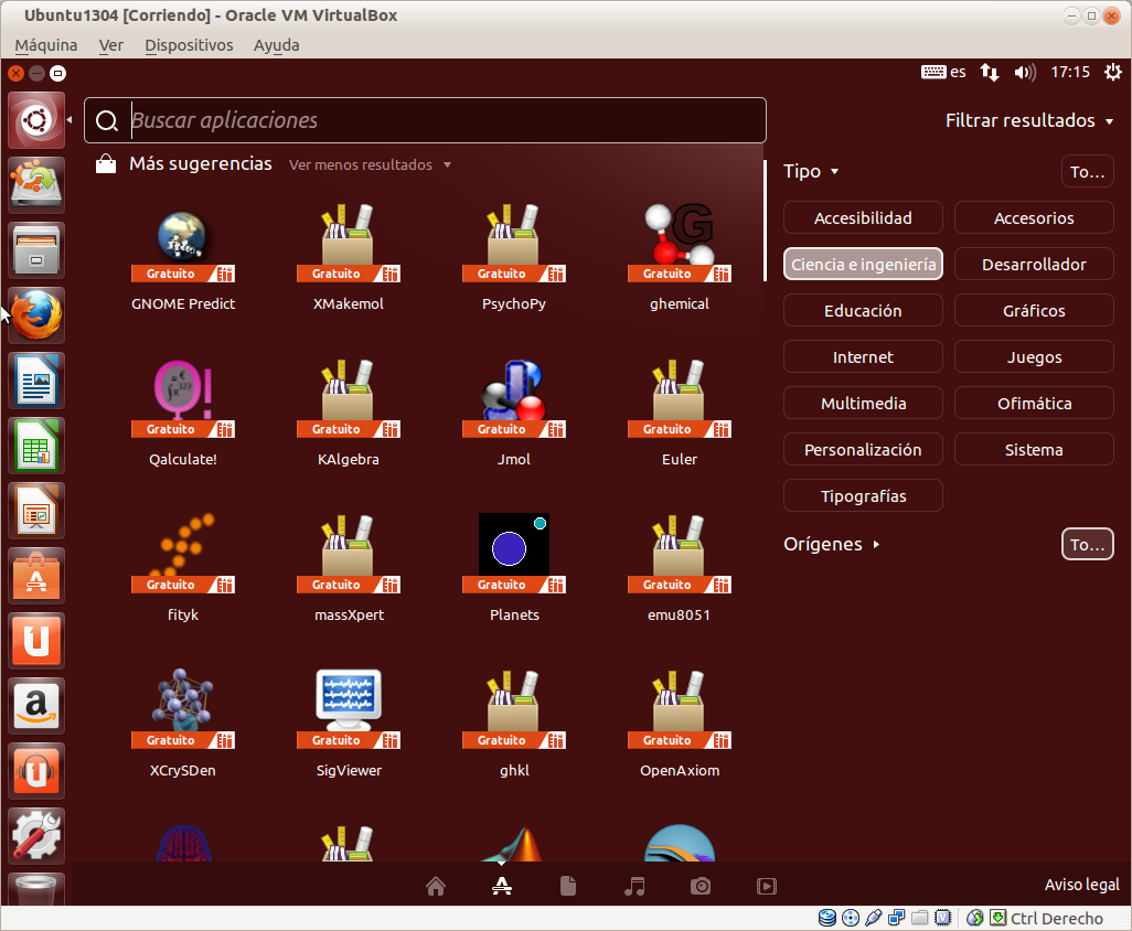 Ya. Hay iconos que indican el nombre de la aplicación y ya está pero otros dan a entender que hay otras aplicaciones gratuitas. O sea que no están, pero que se pueden obtener de forma gratuita, supongo que pinchando el icono. Y si elijo ofimática?