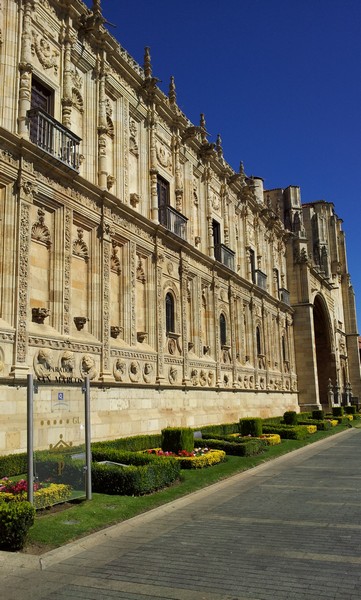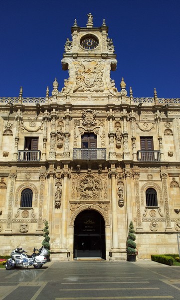 El Hostal de San Marcos es el hotel que la red de Paradores tiene en León. Con una fachada renacentista, originariamente ‘hospital’ para los peregrinos del camino de Santiago, fue derribado para levantar un convento en el siglo XVI, ampliado en el XVIII. El edificio incluye un claustro, un museo y una iglesia, con muebles, tapices y cuadros de la época, muchos recuperados de otros edificios.