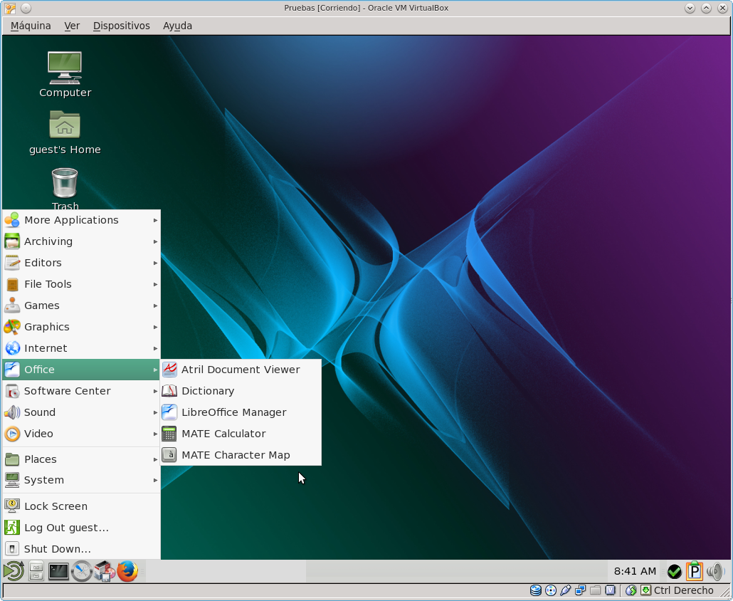 Las pruebas que he hecho en esta ocasión se refieren a su distribución para 32 bits y escritorio MATE, que es especialmente cómodo para quien desea un menú de inicio clásico y facilidad para adecuar el escritorio a sus preferencias. He usado como de costumbre la máquina virtual VirtualBox para arrancar el archivo ISO sin necesidad de quemar un CD, y le he ajustado la RAM a 1 Gb.