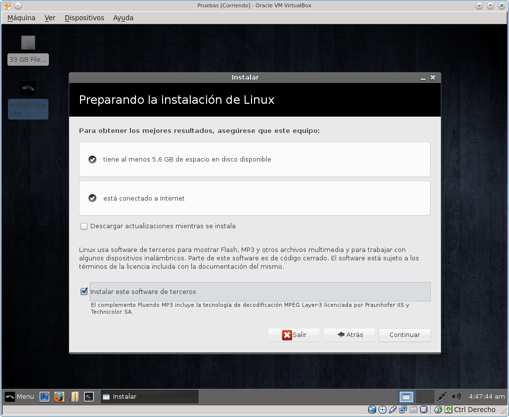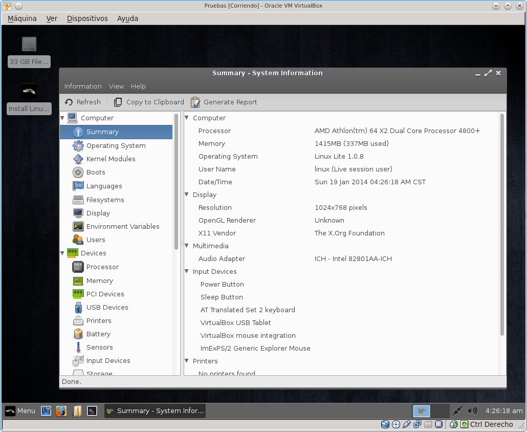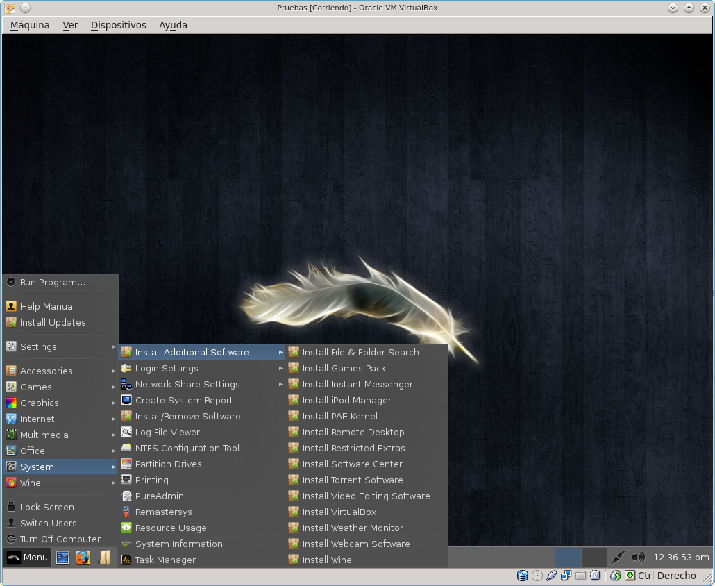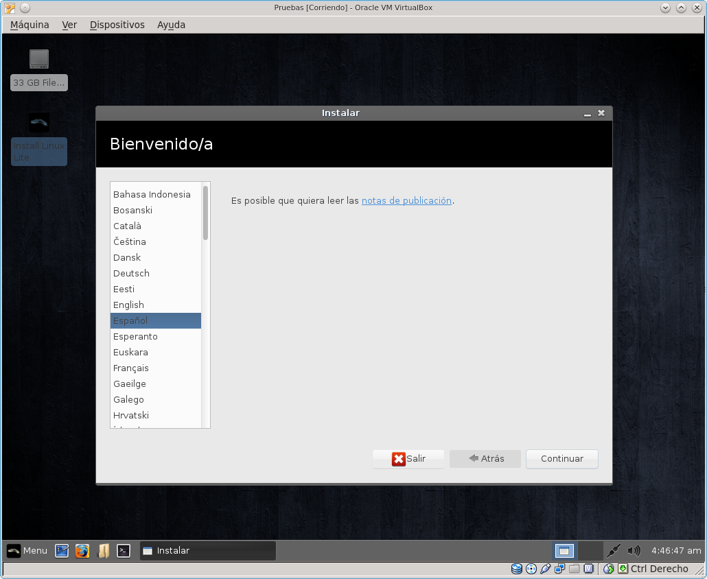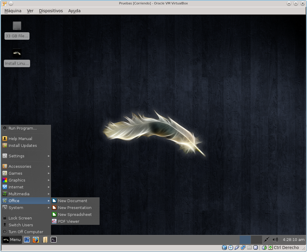 Esta distribución funciona en modo live, y se instala con facilidad. Consume muy pocos recursos: la información del sistema indicó que sólo estaba empleando 360 Mb en funcionamiento. Veamos una selección de imágenes tomadas durante su prueba en VirtualBox, tanto en modo live como luego instalado.