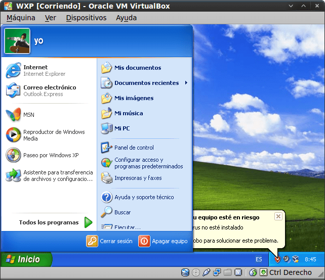 La solución aportada por Robolinux con sus instaladores de máquinas virtuales para Windows no es ‘nueva’. Por ejemplo aquí muestro un Windows XP que instalé en VirtualBox corriendo en mi sistema host habitual, que en este momento es Mint 13: