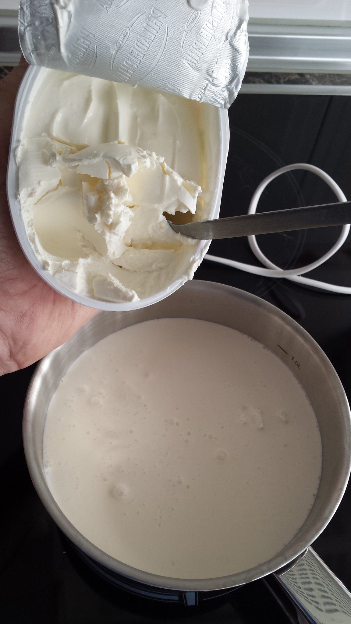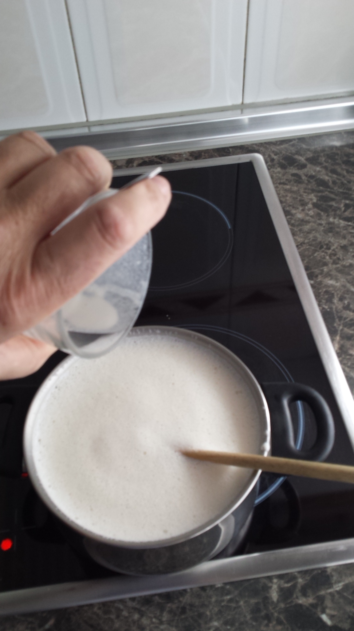 Se pone a hervir y entonces se echa la cuajada hasta que vuelva a hervir.