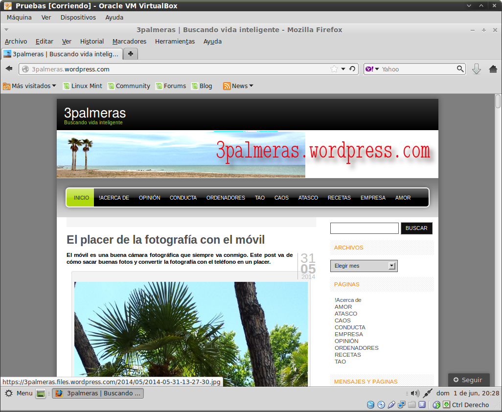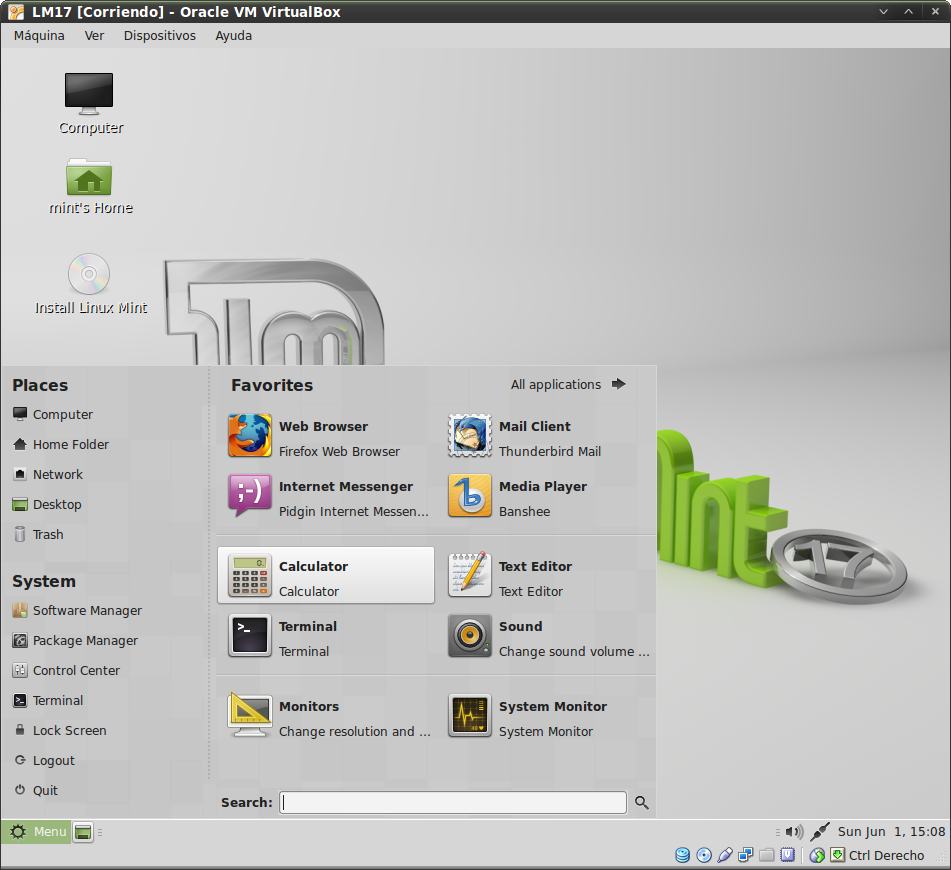 Linux Mint ha lanzado esta semana su versión 17 en sus varios sabores. La distro probada en VirtualBox es la de 64 bits con escritorio Mate, con un resultado excelente.