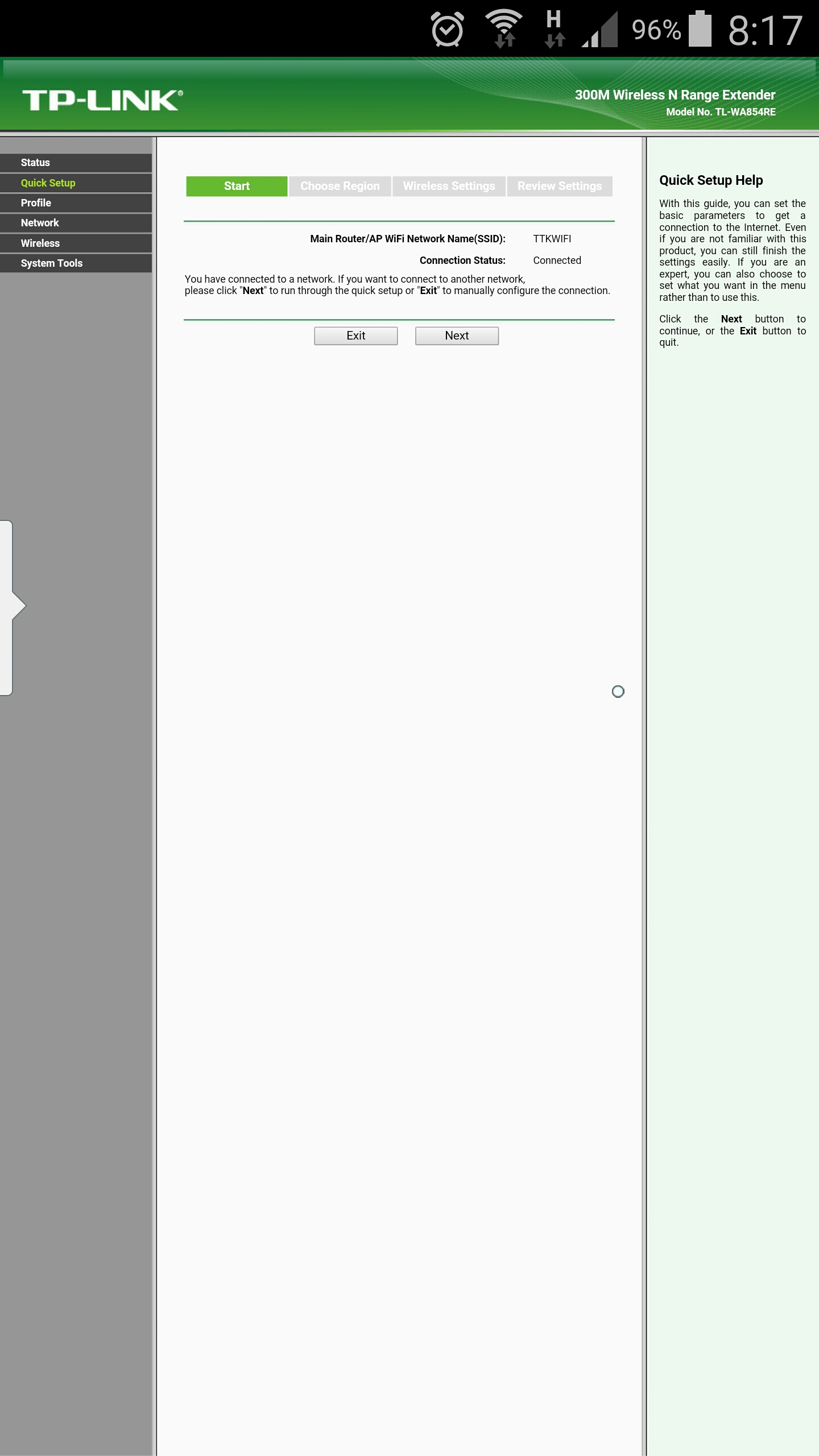 Mediante unos pasos sencillos, el ayudante o ‘wizard’ nos irá guiando para que elijamos el router al que hay que conectarse (en mi caso era TTKWIFI) y pongamos su contraseña principal. El último paso nos informará que ya se ha producido la conexión del extendedor de WiFi al router principal y las luces que indican la intensidad de la señal WiFi recibida empezarán a indicar la calidad de la conexión. También notaremos que el teléfono o el dispositivo que hemos empleado para la configuración se conecta automáticamente en la WiFi donde estaba conectado antes. Ya podemos desenchufar el TP-link y ponerlo en donde sea más efectivo. Al cabo de un minuto o así de haberlo enchufado estará operativo de nuevo e indicando el nivel de la señal que recibe. Hay que probar varios sitios, si los hay, para optimizar su efecto.