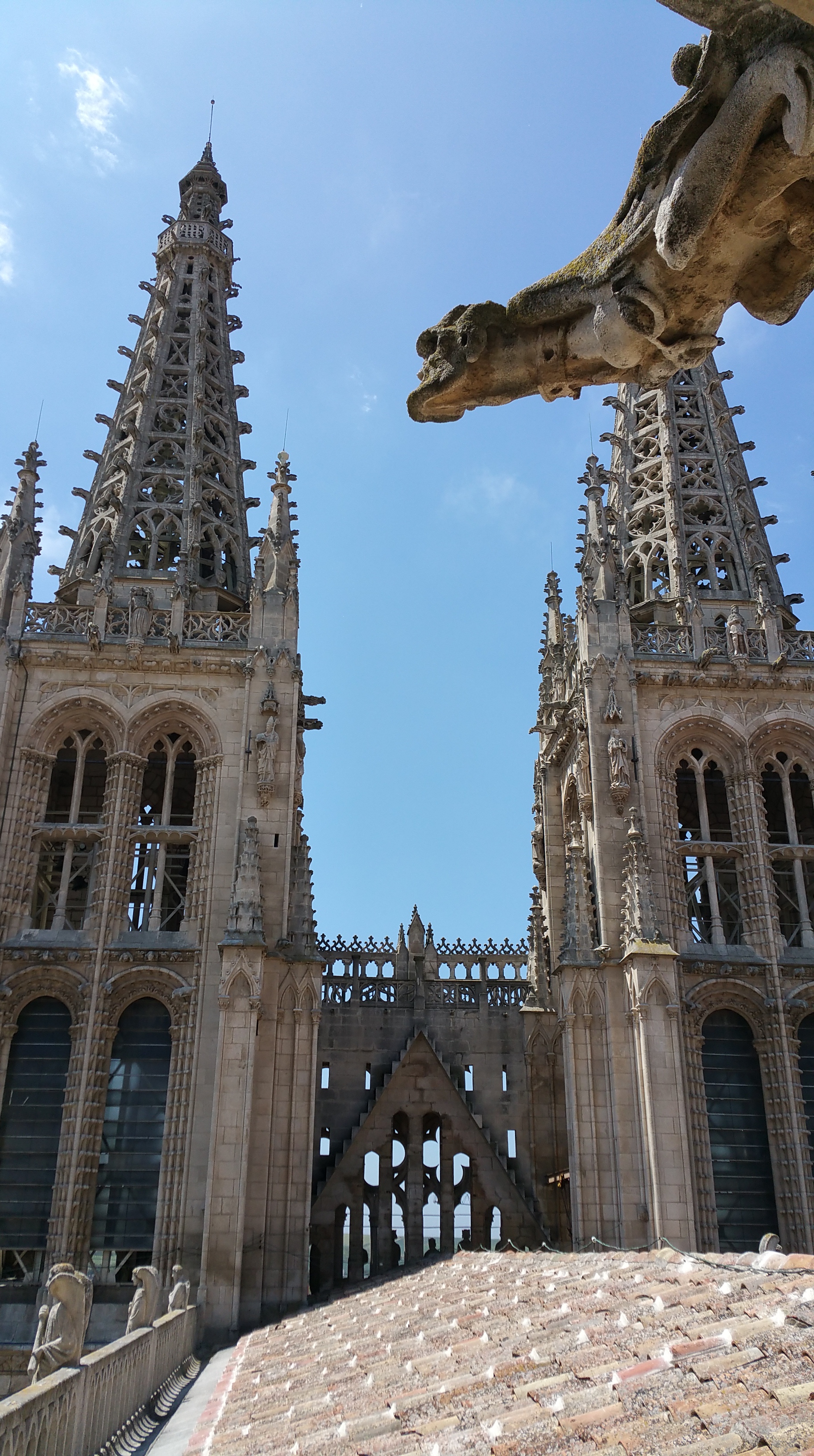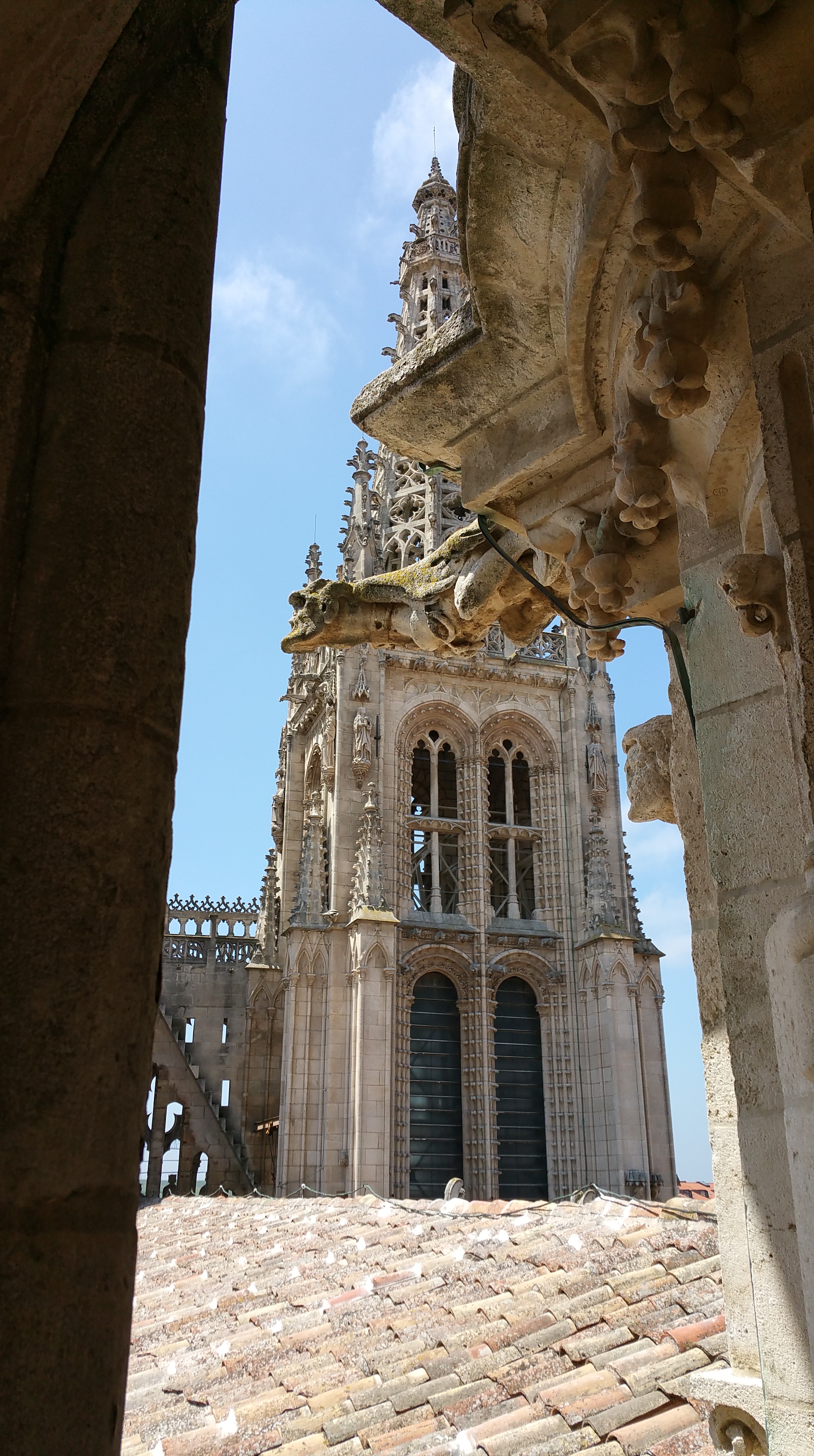 Desde arriba tiene uno la sensación de que lo que está viendo no es lo que vemos los seres humanos, sino lo que ve la catedral. Desde arriba hay dos pensamientos que surgen inmediatamente. El primero es que la catedral es tan rica en arte desde arriba como a ras de suelo. En cada esquina, en cada muro hay profusión de esculturas, bellísimas, serenas, con una riqueza expresiva propia de grandes artistas. ‘Dios lo ve’ es la frase que define el por qué. No lo hicieron para los hombres. Ese arte era una ofrenda a Dios de unas gentes que vivieron en un mundo en que la religión era la savia que alimentaba el tronco del árbol social. Si no, ¿qué otra explicación le daremos?