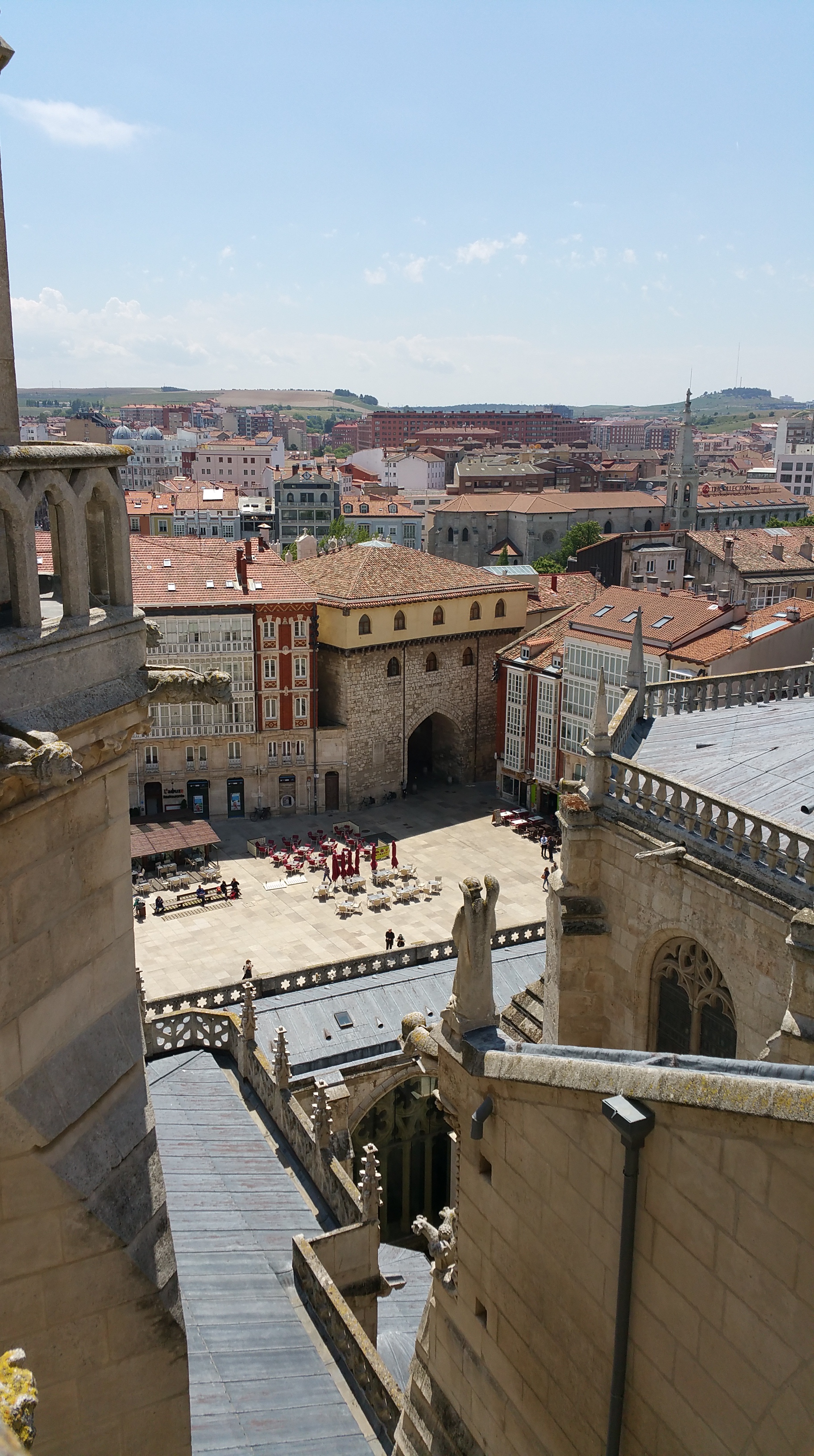 Catedral de Burgos – La Plaza de San Fernando vista desde lo alto. Al fondo el arco de Santa María. Más allá la ciudad