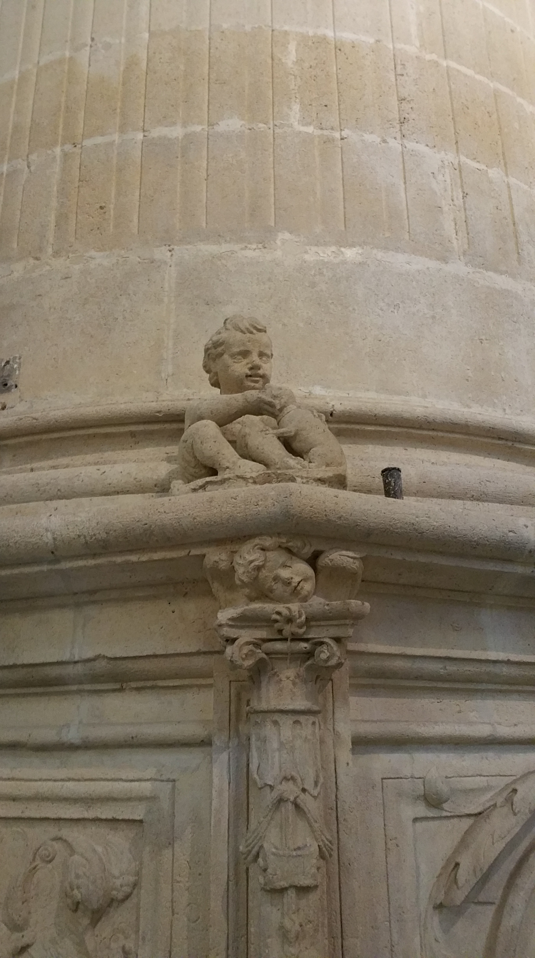 Catedral de Burgos – Figura de un niño jugando con un perro, en la base de una de las columnas del interior del templo