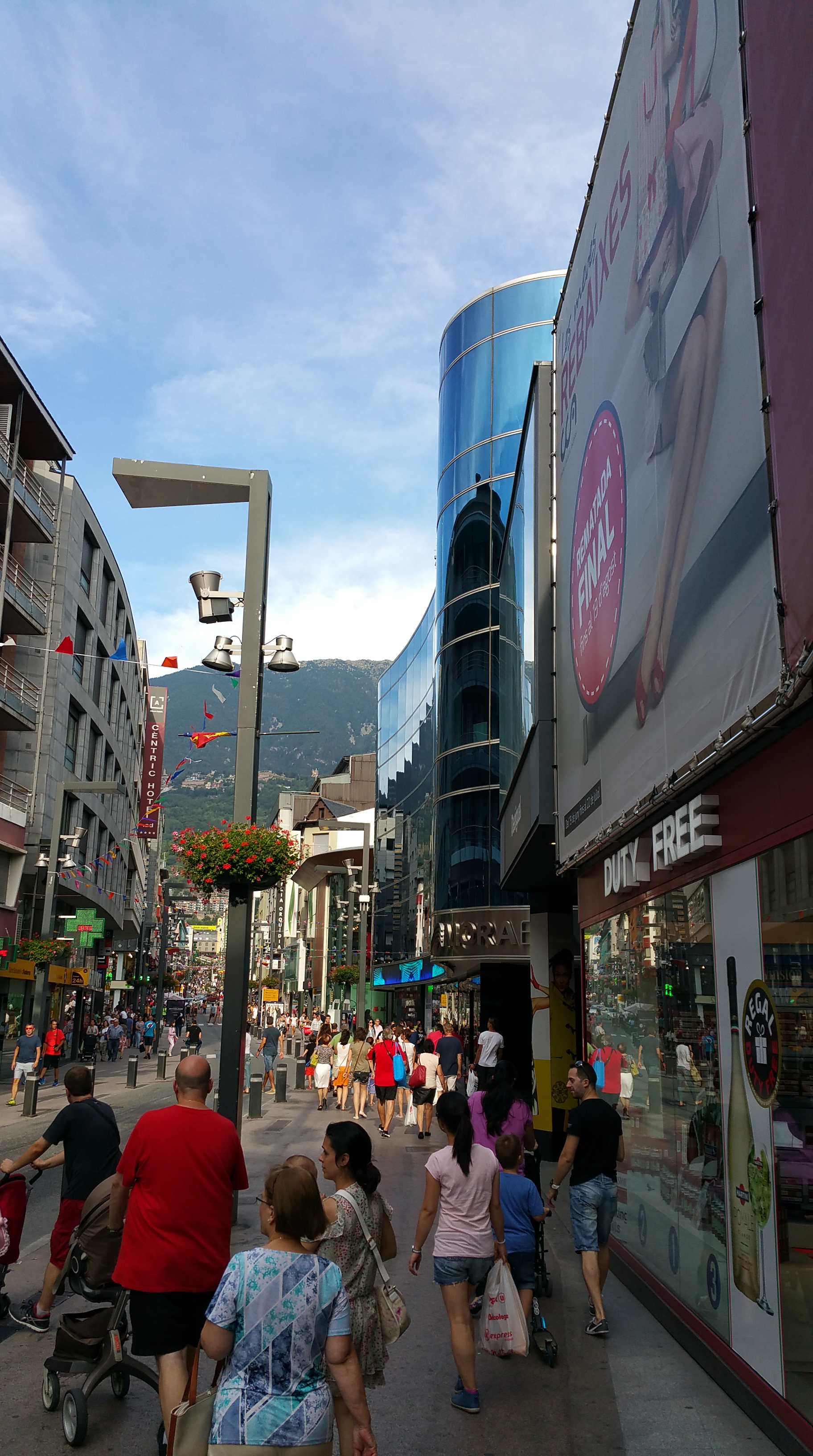 Hay más Andorra, pero la razón principal de la visita suele estar justo aquí en Andorra la Vella, paraíso de las compras. Una población para todo el país de 76.000 habitantes ‘no casa’ con más de 300 hoteles y con calles como la Avenida Meritxell, en la que hay varios grandes almacenes en escasamente un Km de longitud, compitiendo por atraer compradores, y tiendas y hoteles en todos sus portales. Evidentemente los visitantes van a comprar. El motivo por el que yo conocí de niño acerca de la existencia de Andorra es que la gente iba allí a ver si encontraba más baratos equipos de electrónica, joyas, licores, tabacos e incluso neumáticos, con el aliciente de un combustible para el coche también más barato. Y se encuentran, pero ya no son tan baratos que conviertan las compras en el único motivo de la visita, pues mucho de lo que se podía comprar antes en Andorra casi solo se podía comprar allí, en cambio ahora en España tenemos todo tipo de bienes, con gran competencia entre marcas y comercios y a un buen precio, con lo que las diferencias de ofertas y de precio son mucho menores.