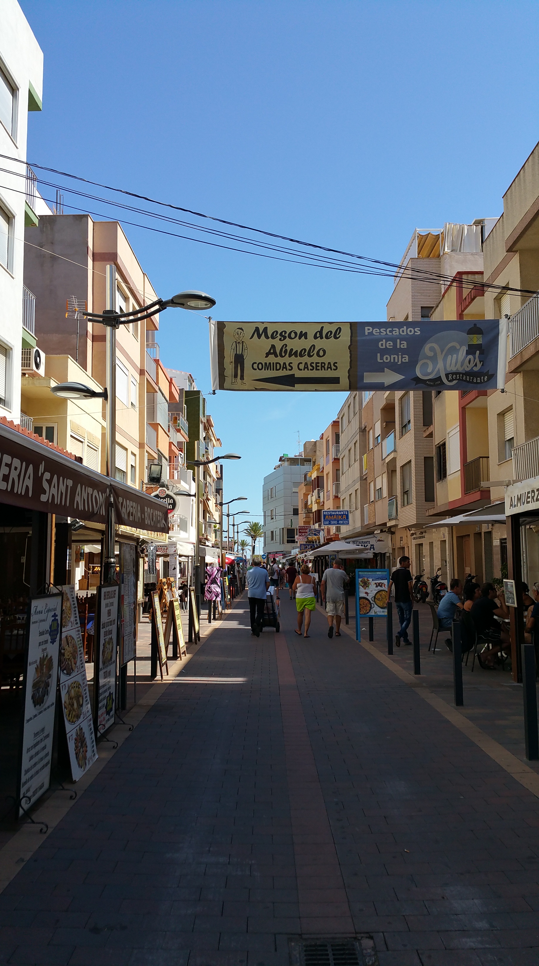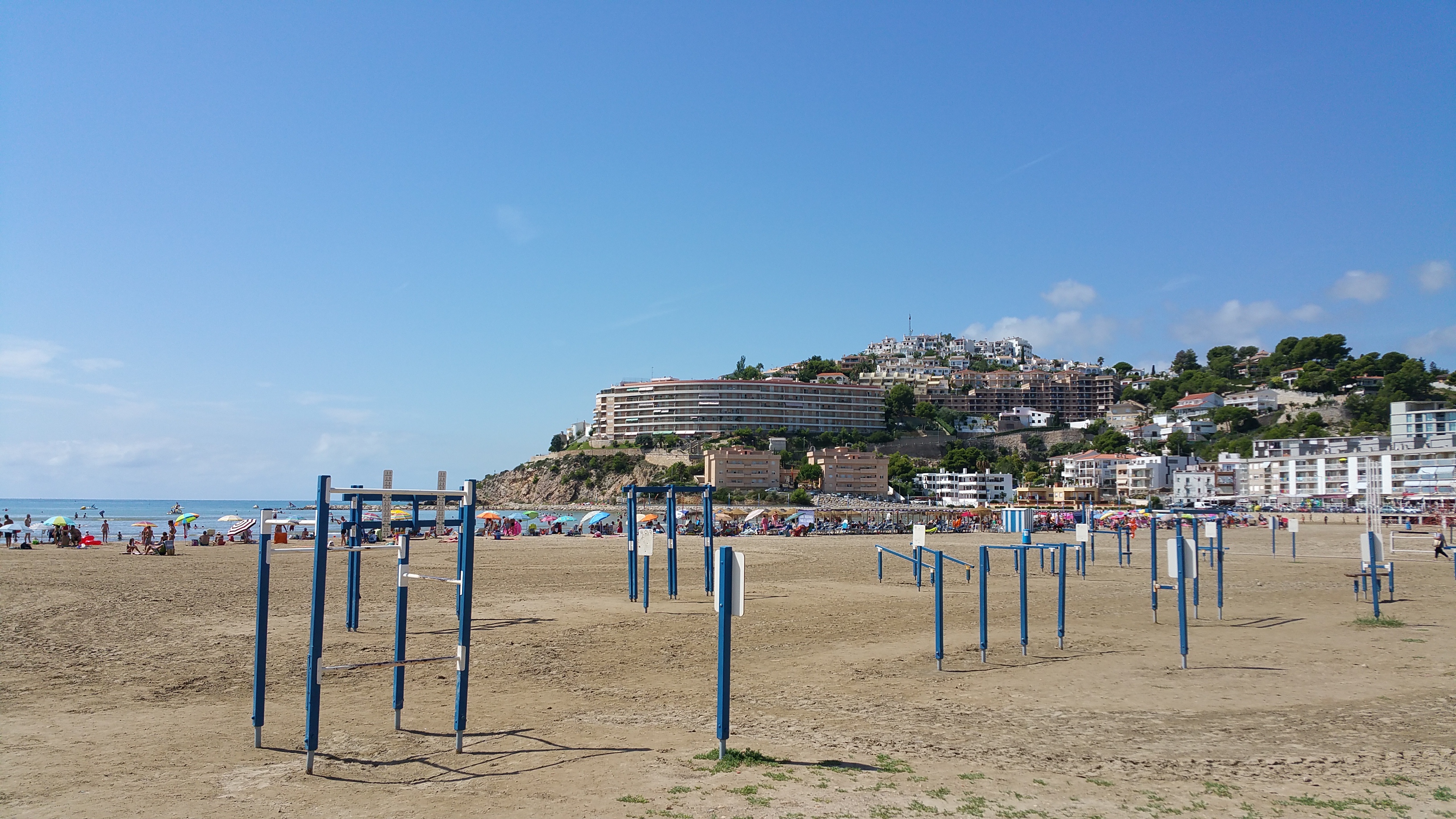 Peñíscola, además de su característica península amurallada en medio de mar, coronada por su famoso castillo del Papa Luna, que sirvió de escenario para el mítico film de los ’60, “El Cid”, con Sofía Loren y Chalrton Heston, plagada de tiendas y restaurantes en callejas que suben, bajan y se cruzan en endiablado laberinto, tiene otras varias partes perfectamente diferenciadas: