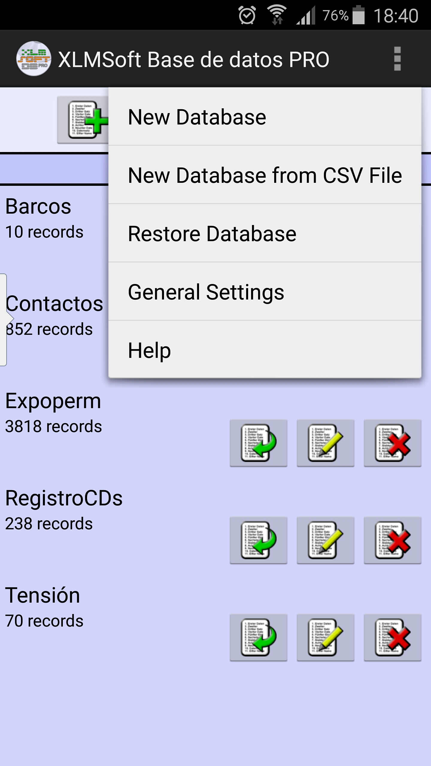 Este programa, XLMSOft Database PRO para Android, tiene la habilidad de importar y exportar datos en formato CSV y es suficientemente potente para llevar, consultar y editar en el teléfono bases de datos semi-profesionales.