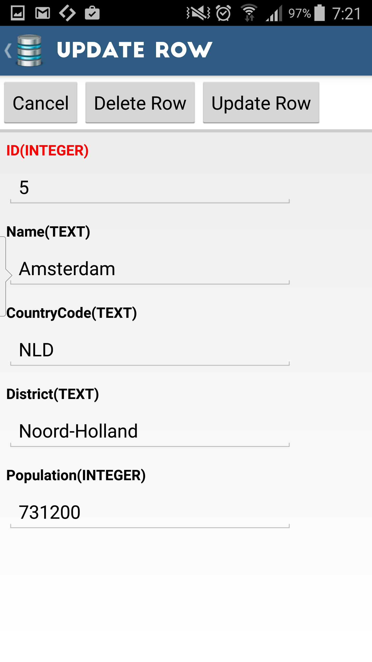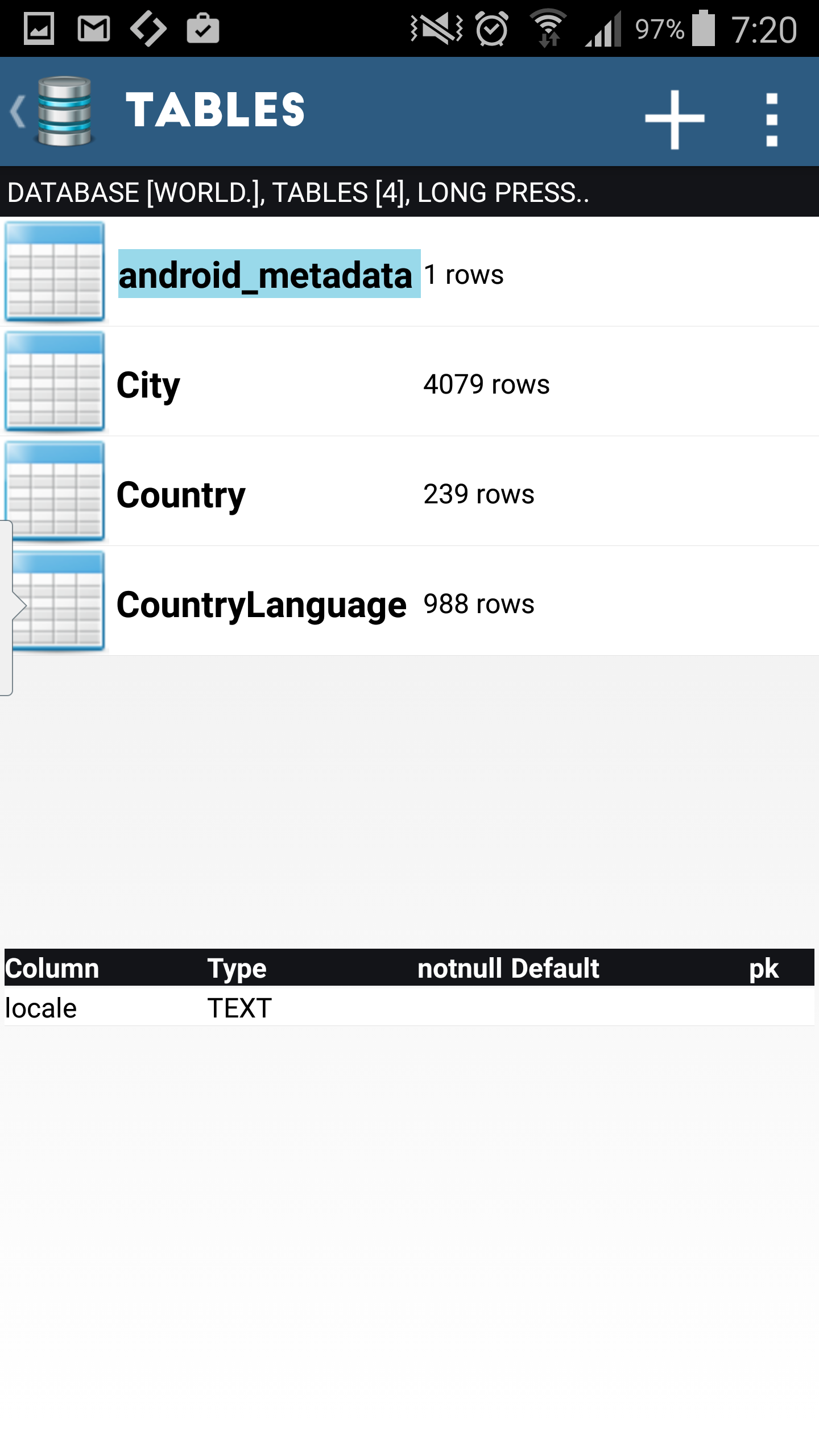 aSQLite es una aplicación muy sencilla, con las prestaciones suficientes que cabe esperar en un cliente de base de datos (La versión de pago se distingue porque bajo su icono se llama dSQLiteManager y cuesta 1,34€)