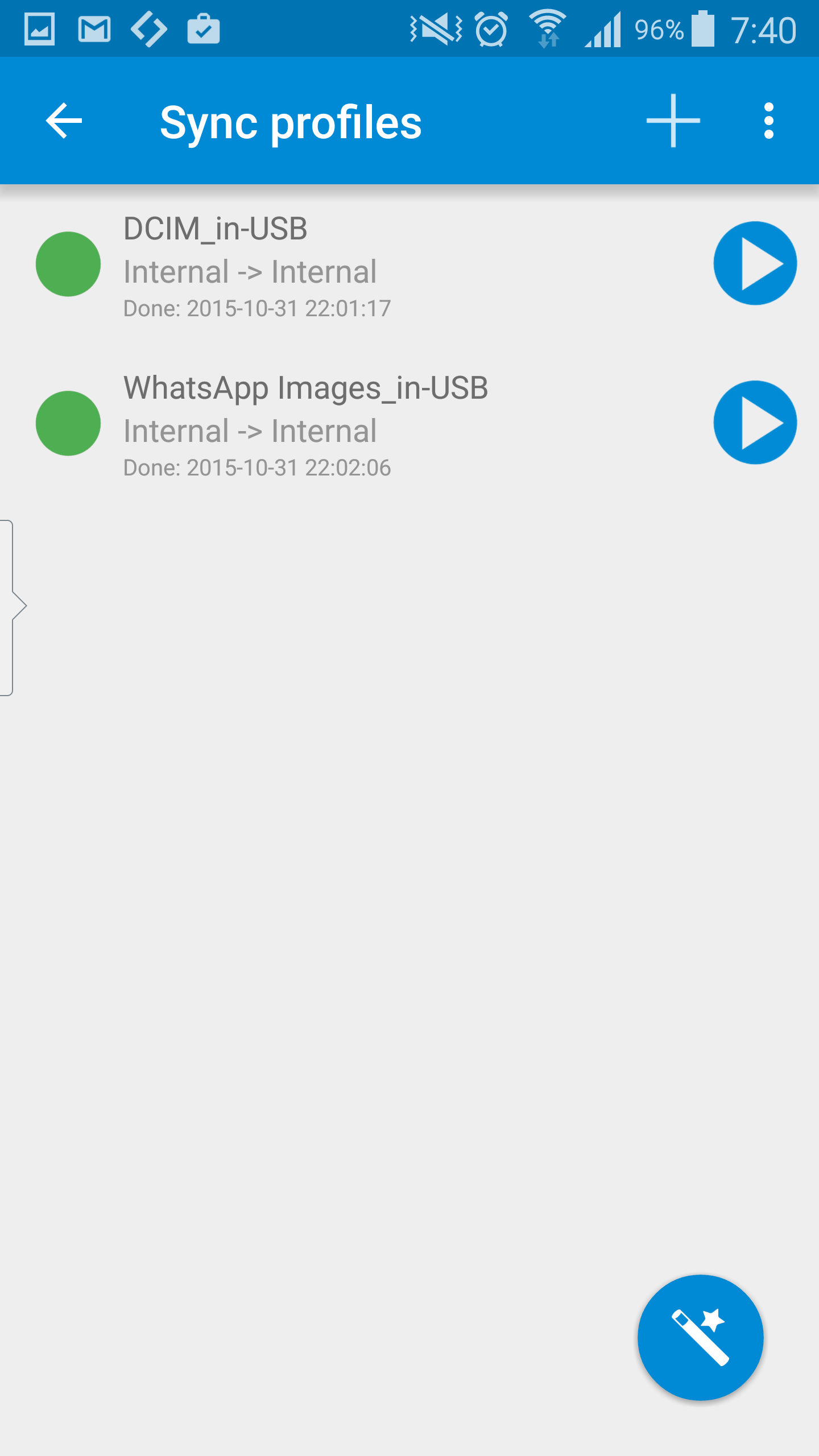 SynchronizeUltimate- Definidos dos perfiles para copiar en un USB OTG las fotos de la cámara y del WhatsApp