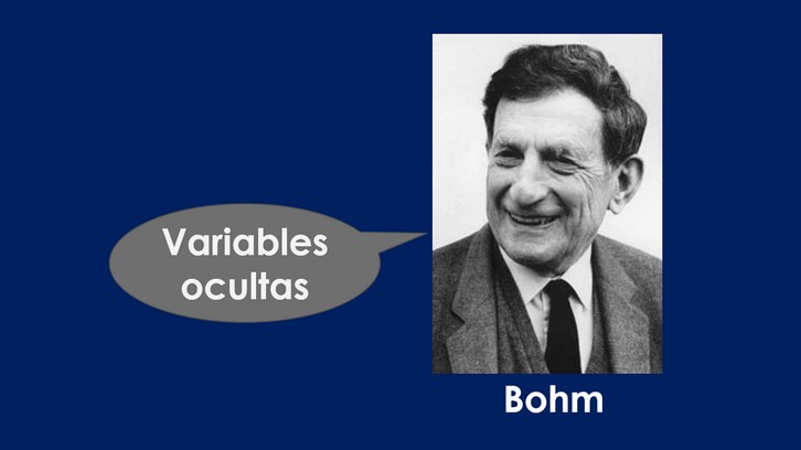 Bohm atribuye cuestiones relativas a la arbitrariedad del comportamiento de las partículas elementales, a variables ocultas, que deben actuar en distancias tan minúsculas que jamás podremos investigarlas directamente. Sea como sea, parece claro que resulta imposible conocer el comportamiento de un cuerpo complejo mediante el estudio de sus partes.