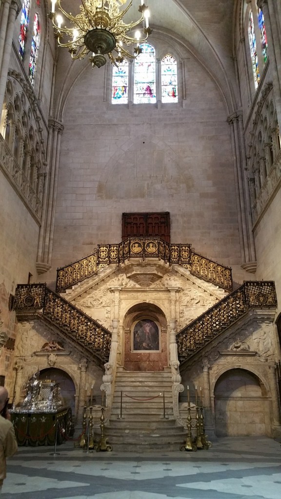 Si lo miramos bien, una catedral, sobre todo las góticas, son construcciones admirables que resisten el paso del tiempo, a pesar de sus atrevidas formas, con contrafuertes y arcos increíbles, de alturas muy superiores a la métrica humana, que queda empequeñecida a su lado. Pocas iniciativas humanas y proyectos han dejado tantas y tan variadas huellas en nuestras ciudades. En Burgos, cabeza de Castilla, predomina el trabajo de la piedra, con una colección de esculturas de las que la mayoría ni siquiera se ven desde el suelo. Me dijeron que «los artistas no trabajaban para el hombre, sino a modo de ofrenda, para deleite de Dios».