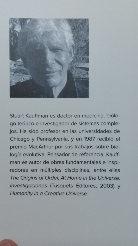 El Universo NO es como una gran ‘máquina’, sino algo mucho más complejo. Cometemos el error de pensar como si lo fuera por una visión mecanicista. Pero realmente no podemos prever los movimientos futuros ni la evolución del Universo, conociendo su estado en un momento determinado. Sólo hacemos estimaciones. Kauffman nos lo aclara desde el primer capítulo: el Universo NO es una máquina. Pero luego vemos que es algo mucho más emocionante.
