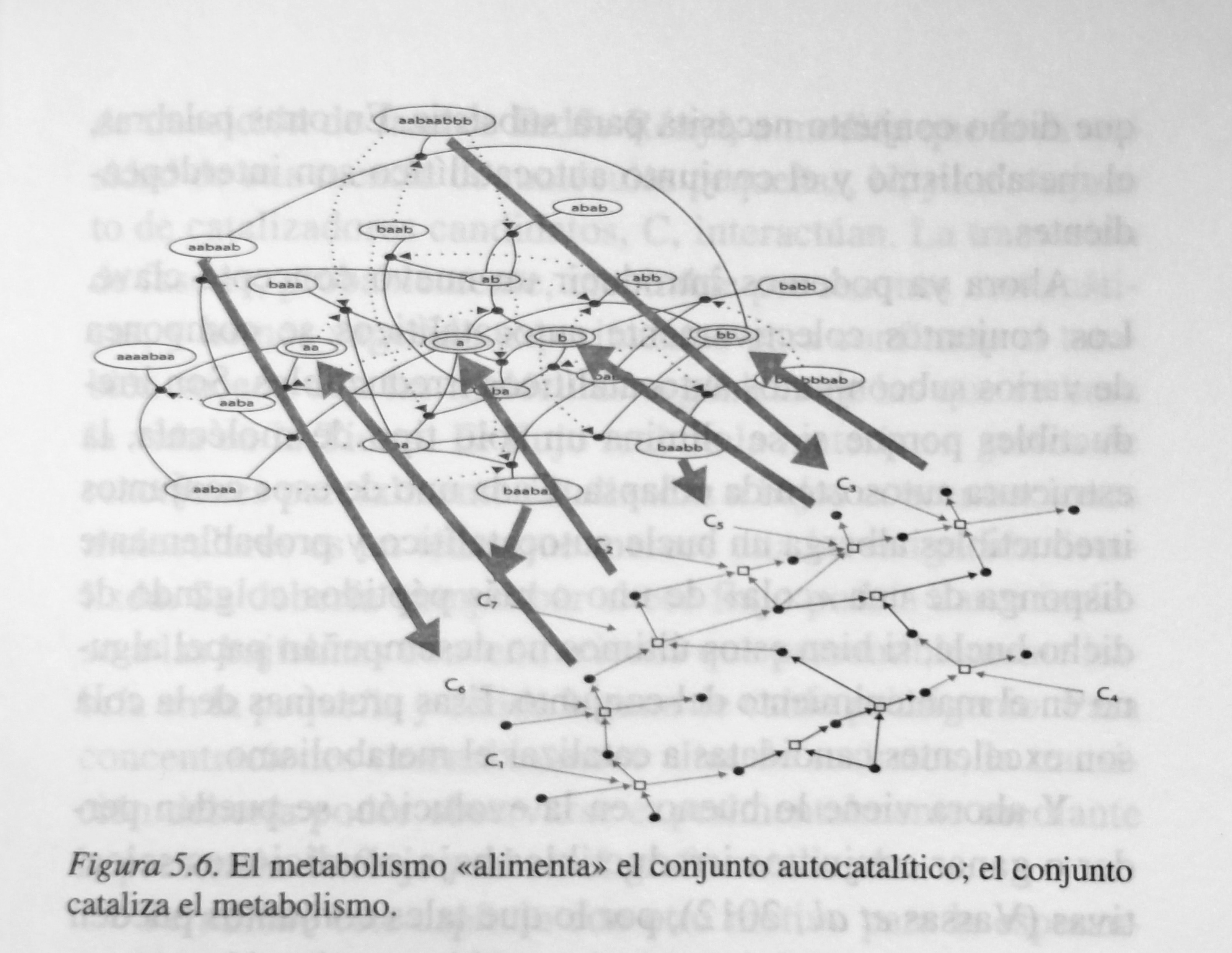 Kauffman aporta una idea que viene a explicar la complejidad de los seres vivos a pesar de la 2ª ley de la Termodinámica (aumento permanente de la entropía) que lo debía dificultar, que es el concepto de auto-catálisis. Ya solo este ‘meme’ merece financiar la idea, la editorial y al autor si le llega algo de mis euros. Por cuanto a mi se me asemeja contrapuesto y esclarecedor frente a criterios de pensamiento demasiado mecanicistas. En efecto: la corriente darwinista da por supuesto que se producirá un desarrollo basado en el azar favorecido por las oportunidades de supervivencia de los más preparados para capear los cambios de su entorno al haber logrado (espontáneamente) las mutaciones adecuadas.
