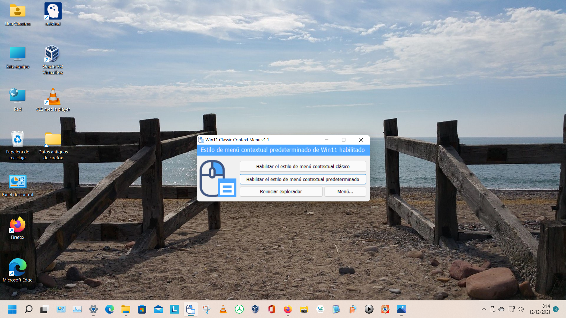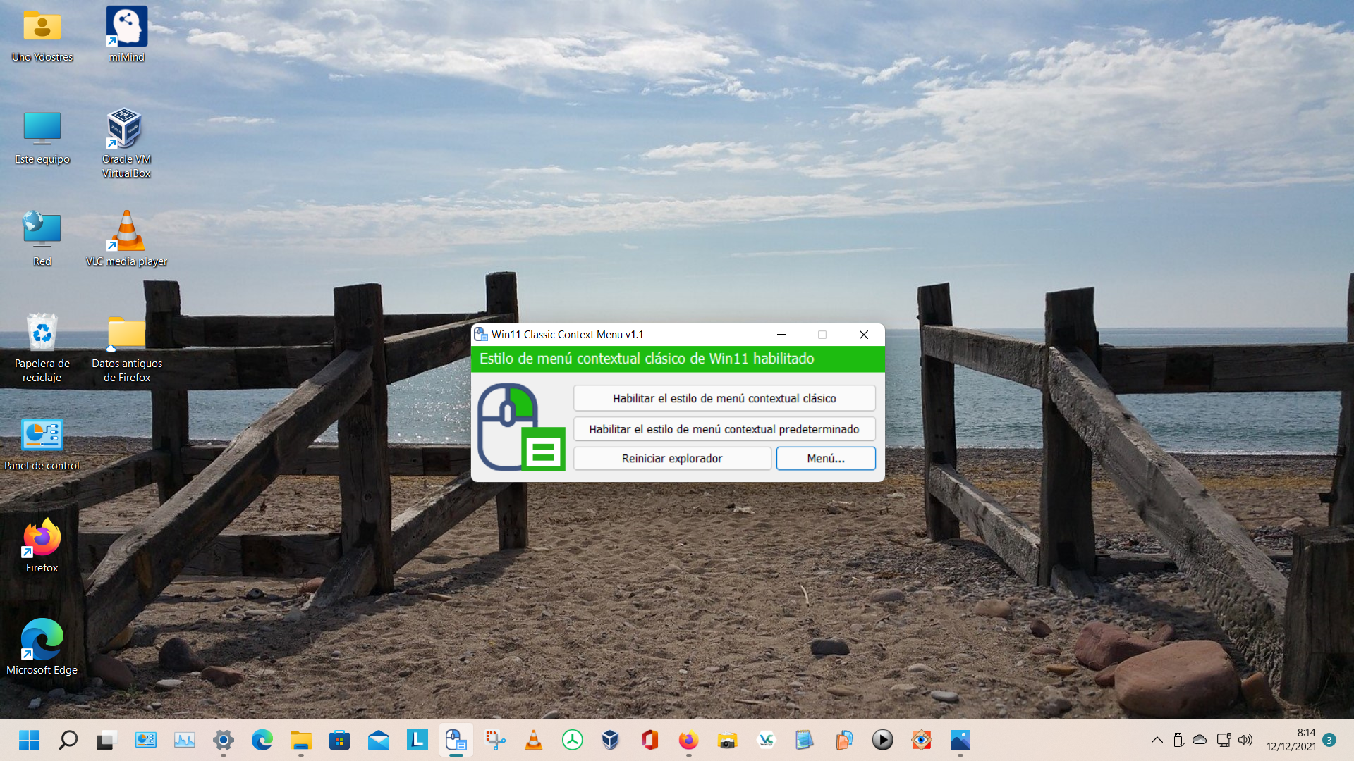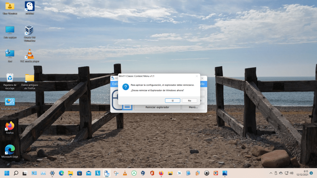 Entonces basta con pulsar en la aplicación «Habilitar el estilo del menú contextual clásico» y luego «Reiniciar explorador» para que se habilite el «menú contextual clasico» de W11, que es como el que teníamos en W10: