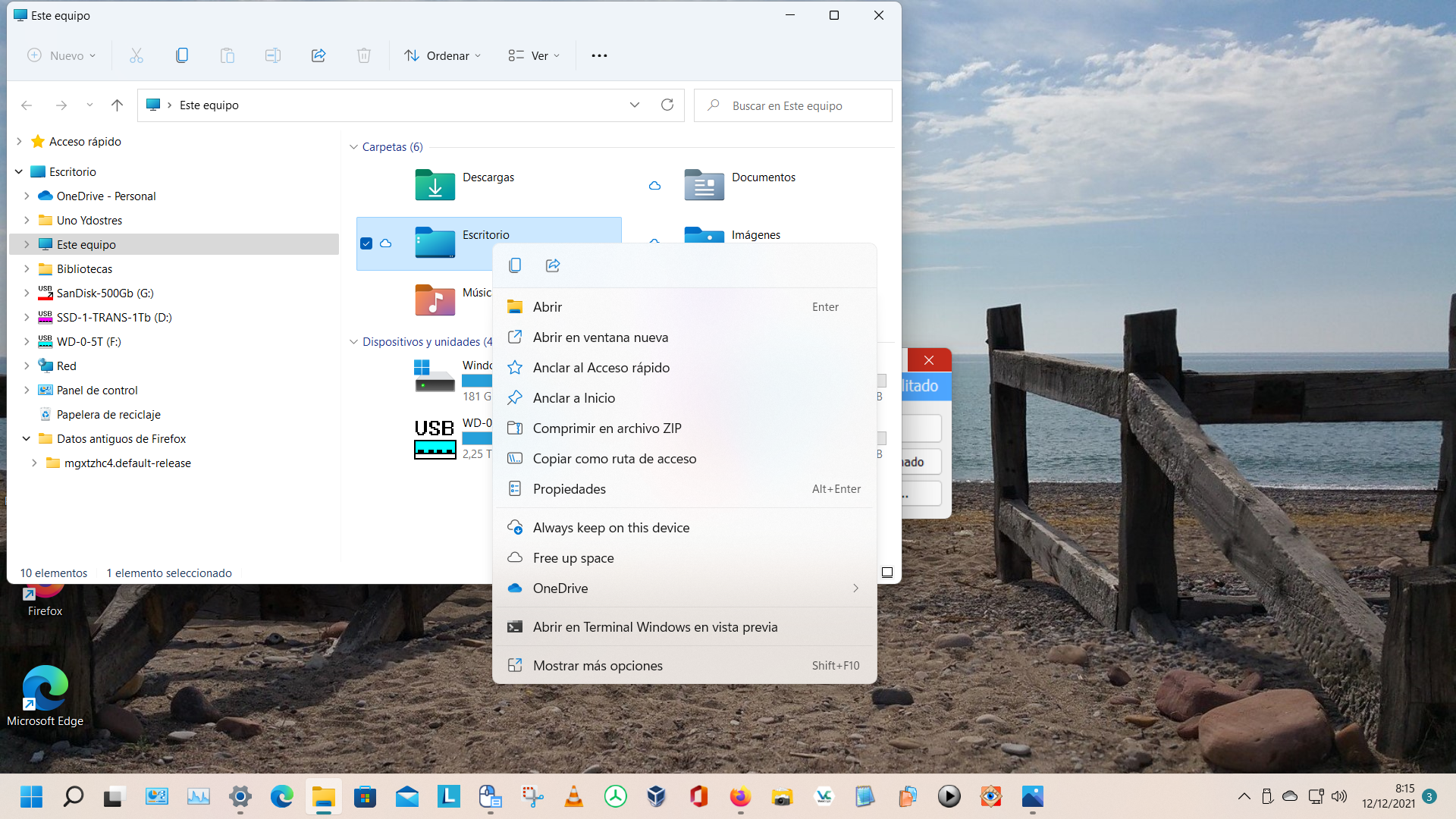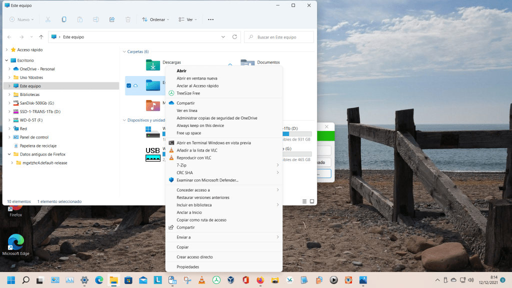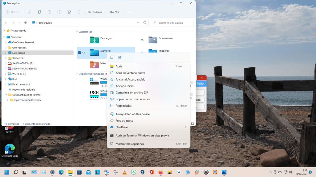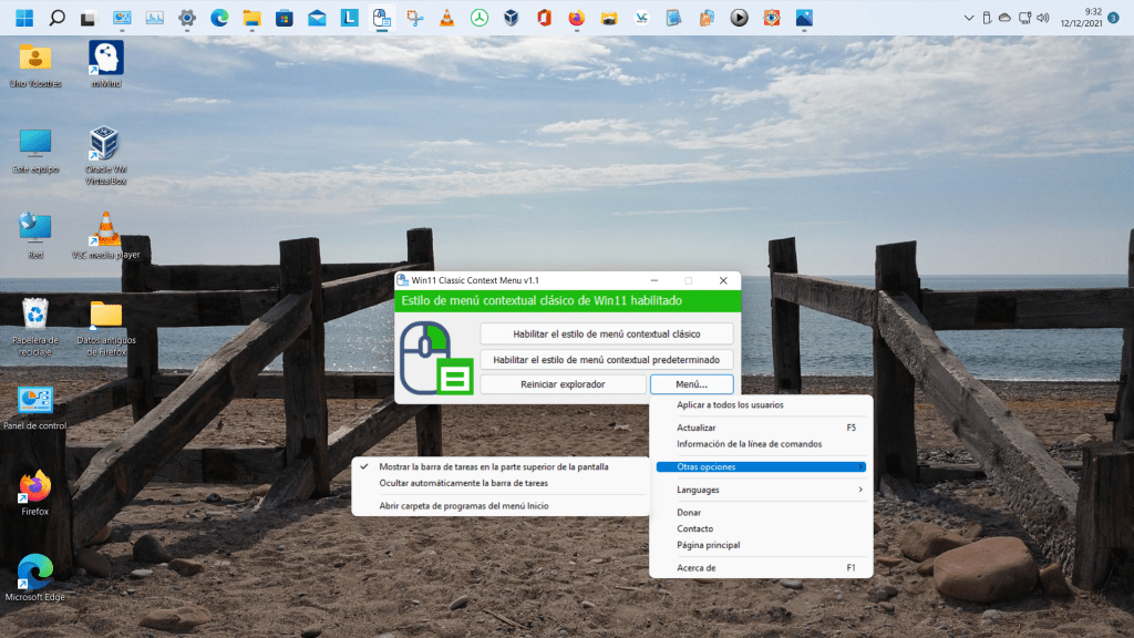 Pero echaba en falta poder poner la barra de tareas en la parte de arriba de la pantalla, pues en W11 viene fija abajo, sin ningún medio sencillo para cambiar su posición. Luego, con el uso diario, vi otro defecto que en mi caso me entorpece el uso del ordenador y es que el menú secundario o contextual que se activa con el botón secundario del ratón (normalmente el derecho), no muestra todas las opciones, sino que para ver la mayoría de ellas hay que pulsar en «Mostrar más opciones«, con lo cual, lo que antes requería un clic de ratón, ahora necesita dos clics y una pérdida de tiempo.