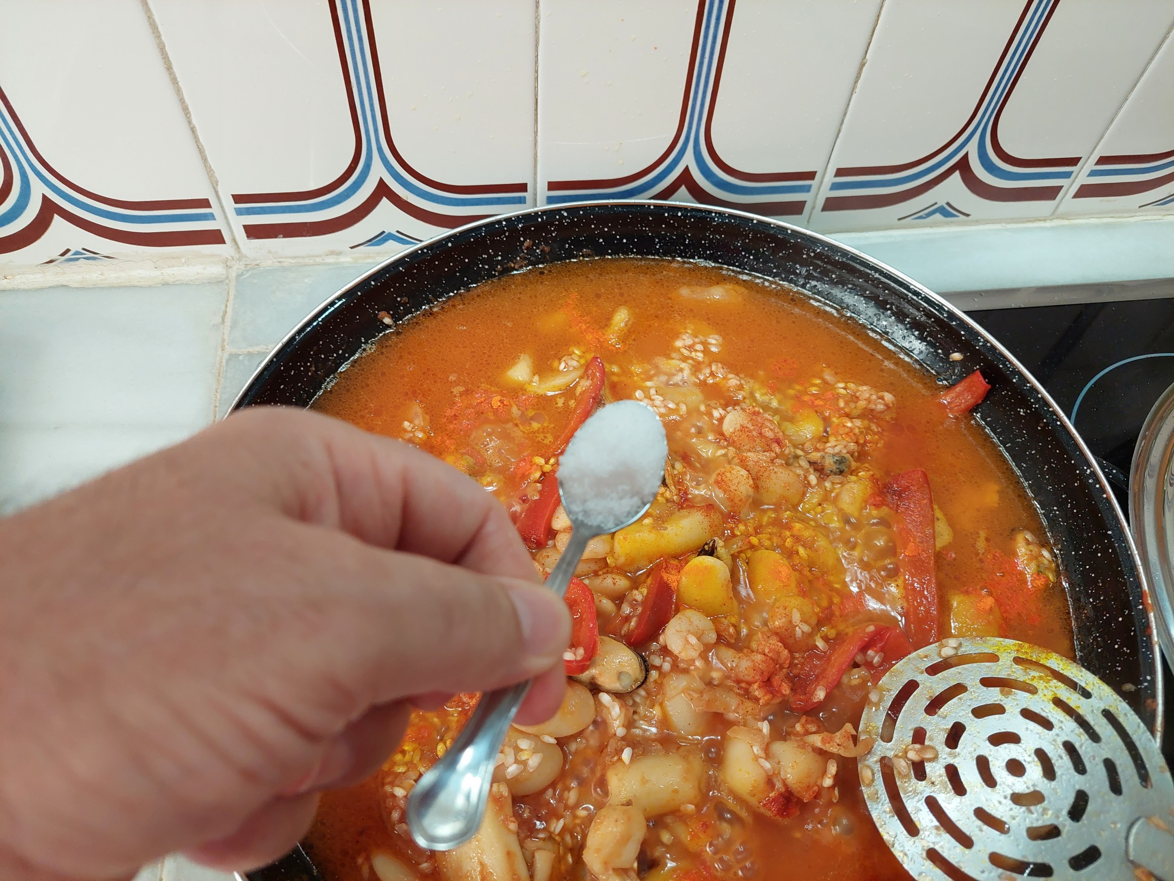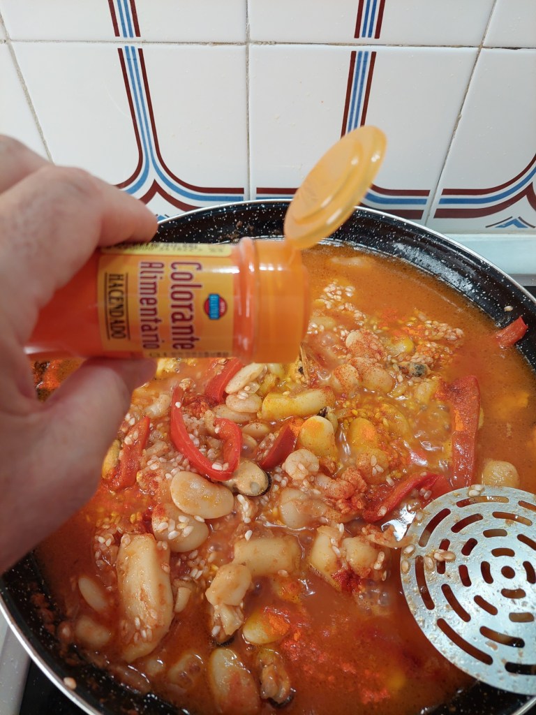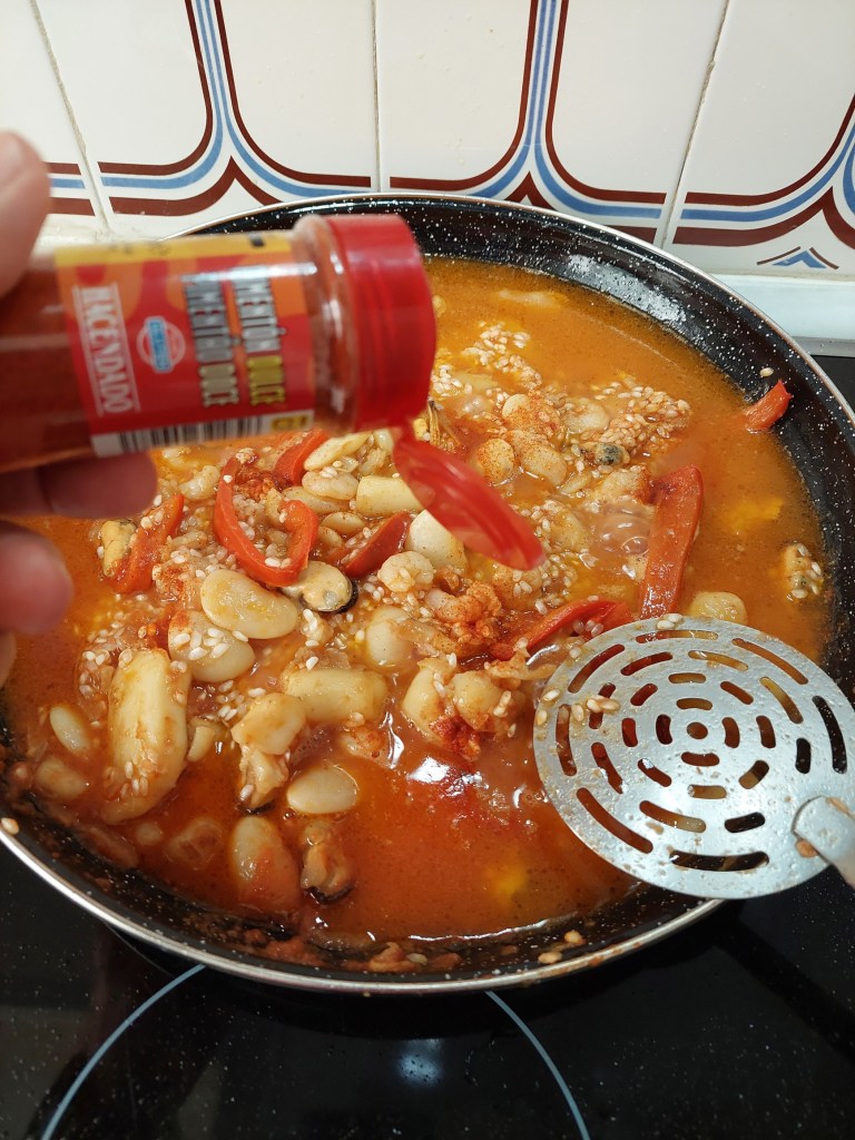 En el momento en que hemos añadido el agua, es cuestión de poner los condimentos que hacen característico el plato.