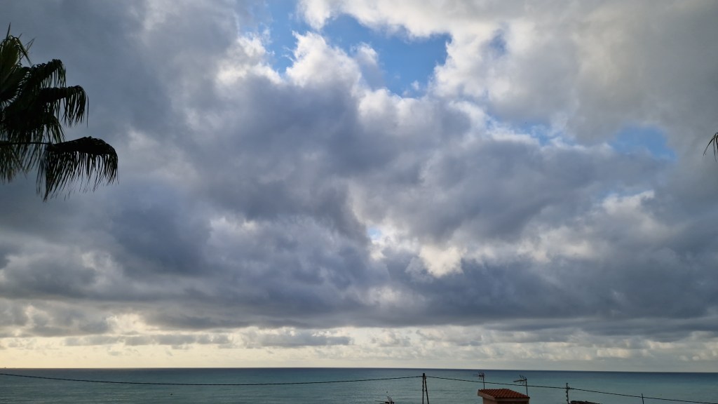 Es una bendición, tener esas nubes, desde antes de que salga el sol hasta media mañana, que hacen más agradable la estancia en la playa y el baño matinal, antes de que el calor del verano apriete de lleno.