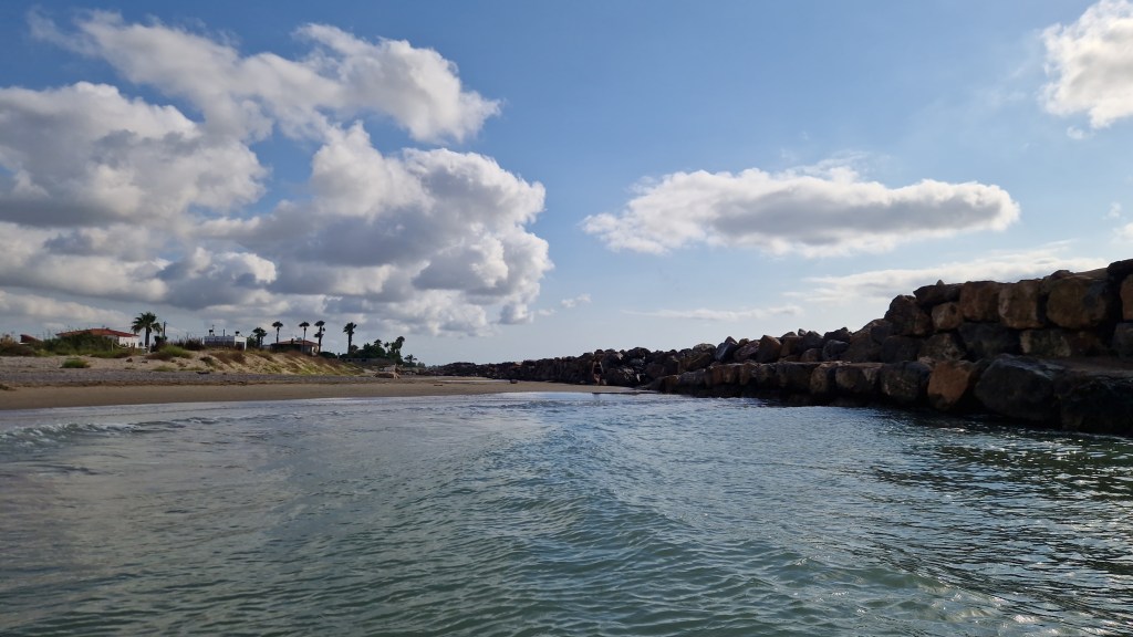 Esta situación es genial si la aprovechamos para un baño temprano refrescante. Luego, el sol se encargará de secarnos antes de emprender el camino a casa y empezar un nuevo día. Pongo a continuación varias fotos en secuencia, del mismo día, donde se ve que va desapareciendo progresivamente la cubierta nubosa protectora.