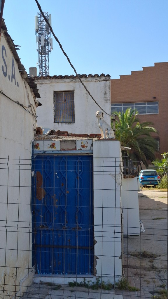 Hace unos pocos días paseaba según mi costumbre y me topé con esta bonita metáfora de vigilante, que es un perro de porcelana, como los que se podían encontrar ya hace un tiempo en Portugal, y servían por ejemplo de adorno de una escalera. Este estaba cumpliendo una noble misión de vigilancia para evitar intromisiones. Había ya pasado de largo, pero me volví para captar la imagen.
