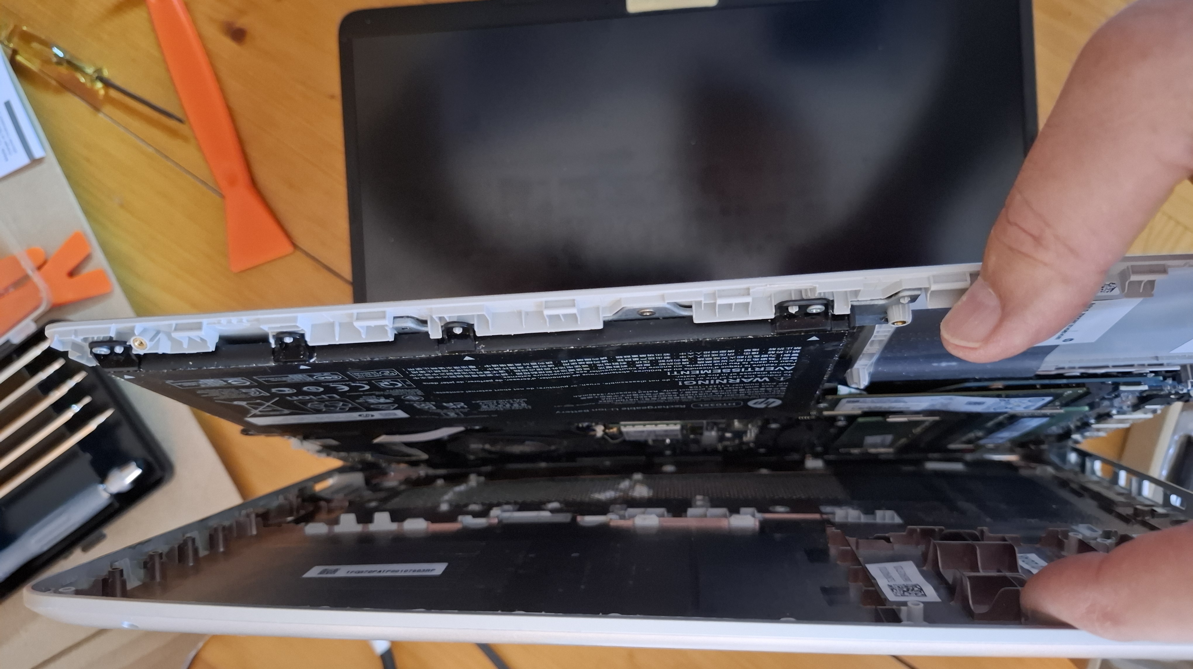 Me atreví a cambiarle la batería a un portátil en casa. Tras averiguar por indicios el modelo hice un pedido por Amazon para sustituir la pieza vieja por una nueva. Toda la magia de la pantalla en el uso normal de estas máquinas se desvanece al operar, porque se ve que por piezas no somos nadie.